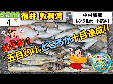 2025年11月4日(火)、福井、敦賀湾、中村旅館でのレンタルボート釣り実釣動画。サビキ釣りにエギング、ジギング、いろんな釣りでそれぞれの釣果が上がる。何をやっても何かが釣れる。今の敦賀湾は、魚のスクランブル状態。そんな実釣動画です。