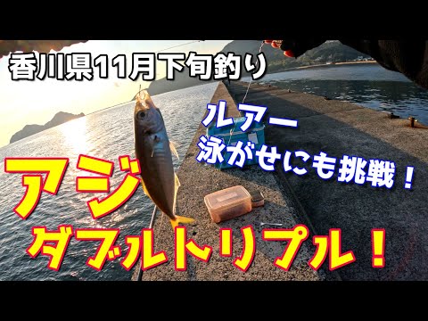 香川県11月下旬 アジがダブルトリプル! ルアー、泳がせにも挑戦!