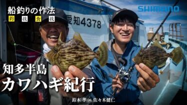 名手ならではの船釣りにおける釣り方・戦略・食のこだわりまでを収録した「船釣りの作法」。シリーズ第39話は鈴木孝と佐々木健仁が知多半島のカワハギ釣りを紹介します。