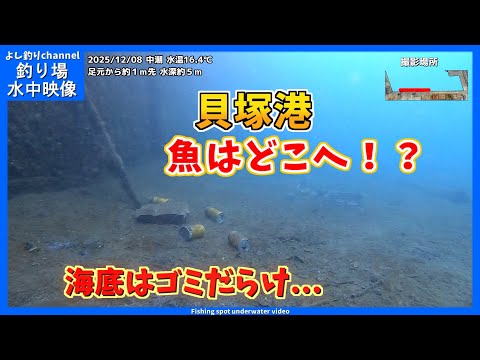 【魚はどこへ!?】海底はゴミだらけ… 大阪の釣り場 いつも汚い貝塚港 2025年12月 冬の水中映像 No.443