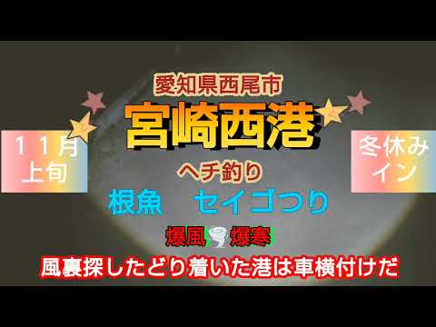 愛知県西尾市 宮崎西港 ヘチ釣り 根魚 セイゴつり 爆風🌪️爆寒 風裏探したどり着いた港は車横付けだ‼️ 11月上旬釣行 冬休みイン