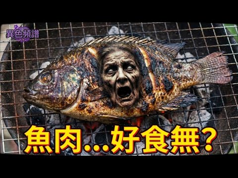 傳說在高雄岡山(一說是嘉義蘭潭)的溪邊,一群釣客釣起了一條巨大的吳郭魚。 當他們開心地升火烤魚,準備大快朵頤時, 竟然聽到魚身發出了一個蒼老、沙啞的聲音問著:「魚肉好吃嗎?」 仔細一看,那烤焦的魚皮上,竟然浮現出一張老太婆痛苦的臉…