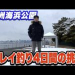 この寒い時期には釣れればデカい魚が上がると、週末になるとオデコなんかなんのその、ヘラ狙いのアングラーがぎっしりと釣り台が並びます。