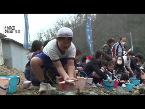 福山市北部の新市町を流れる神谷川では、今月1日に解禁されたアマゴ釣りの人気が高く、子どもの放流体験は川を大切にする心を育んでもらおうと地元の漁協が2014年から毎年、企画しています。
