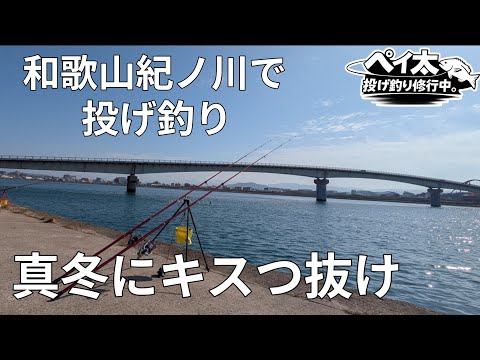【和歌山県紀ノ川】真冬に釣友がキスを狙ってるとまさかの・・・【和歌山県に投げ釣りでヒラメを狙う!】