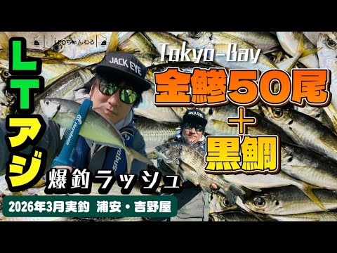 2026年3月、千葉・浦安「吉野屋」さんからLTアジの仕立船で出船★良型アジがバクバクの絶好釣でジャスト50尾達成!さらに伏兵クロダイも登場し、サイコーの一日になりました♪