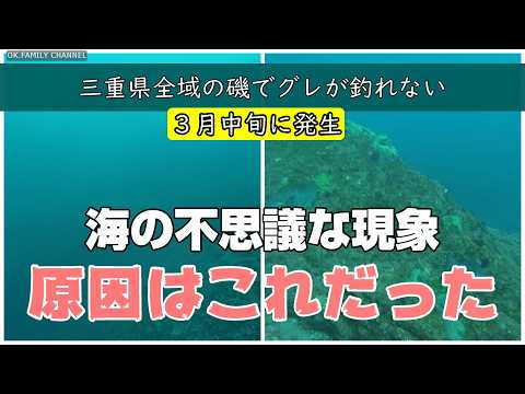 スポンサーリンク 磯釣り 海の異変 春濁り 3月の中旬、三重県の広範囲でグレが全く釣れない現象が発生、海が濁っている 水中映像で原因を探るスクープ映像を紹介します 近畿地方 2026.03.26 磯釣り 海の異変 春濁り 3月の中旬、三重県の広範囲でグレが全く釣れない現象が発生、海が濁っている 水中映像で原因を探るスクープ映像を紹介します 3月22日 三重県方座浦の磯で春濁りを確認しました、グレは三重県の広範囲で釣れていません、水中映像で原因と現象を探ります