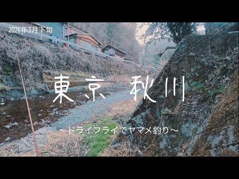 スポンサーリンク 2026年3月下旬 東京・秋川 ドライフライでヤマメ釣り 関東地方 2026.03.28 2026年3月下旬 東京・秋川 ドライフライでヤマメ釣り 3月下旬になりましたが、朝は2℃まで冷え込む秋川上流でフライフィッシングをしました。今週もドライフライでヒレピンヤマメを狙って、はじめての区間を釣りました。