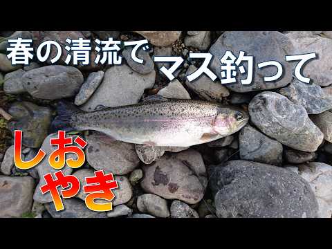 【解禁】春の渓流でマス釣りで塩焼きなのだ【山梨県】春の味覚なのだ【ニジマス&オイカワ】Japan's Fishing in Spring