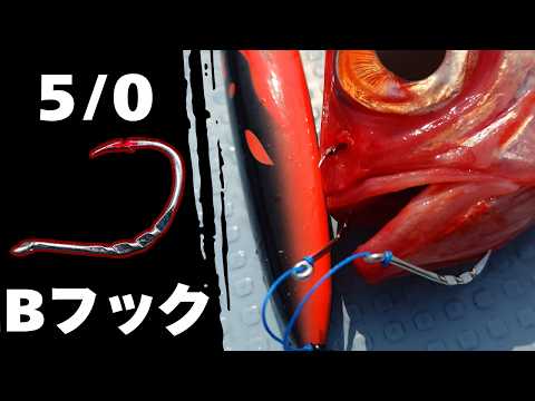 新島キンメジギングにおいて必要不可欠ともいえるBフックですが、もう一回り大きいサイズ(5/0)の発売に向けてmesso!!様よりテスト品が届きましたので検証してきました。