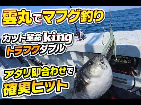 福井県小浜の雲丸でマフグ釣り カットウ革命kingトラフグダブル アタリ即合わせで掛かる編