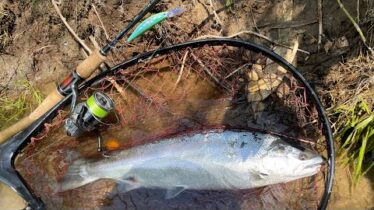 ゴムボートから狙うサクラマス。