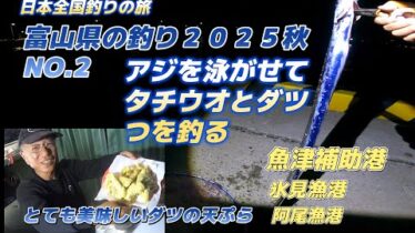 富山県の釣り2025秋NO.2「アジを泳がせてタチウオとダツ釣り」魚津補助港・氷見漁港・阿尾漁港「キャンピングカー車中泊で北海道~沖縄日本全国釣りの旅」