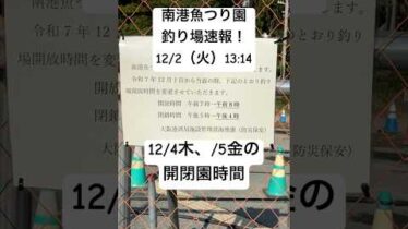 近畿地方 南港魚つり園釣り場速報!12/2(火) #大阪湾 #ショアジギング #青物 #釣り場 #堤防釣り