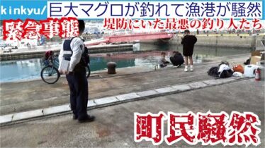 九州地方 堤防で最低な釣りかたで仕留める人に遭遇!巨大クロマグロを釣り漁港の町民大騒動!!!