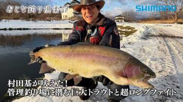 東北地方 【おとな釣り倶楽部】岩手県の管理釣り場で村田基が巨大トラウトとの強烈ファイトを楽しむ。